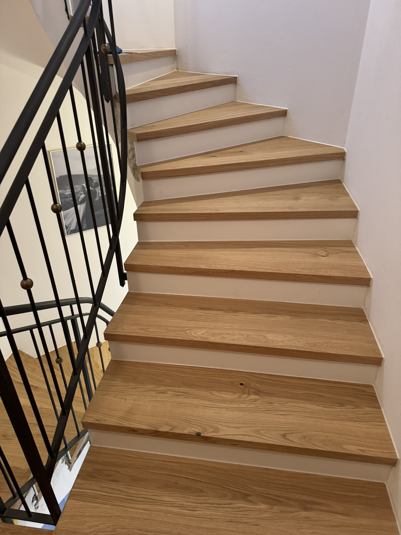 Zur Orientierung: dunklere Hölzer nehmen mit der Zeit einen eher goldfarbenen Farbton an, während hellere Hölzer leicht nachdunkeln.